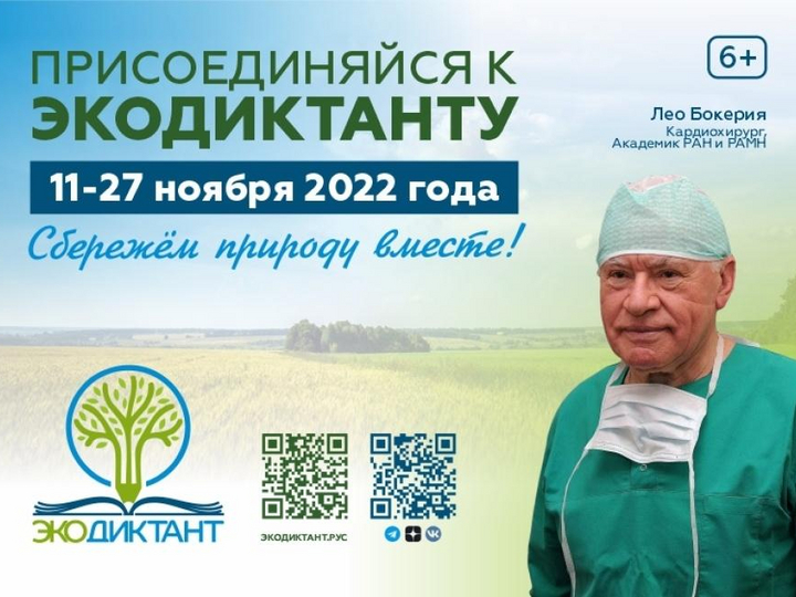 08.11.2022С 11 по 27 ноября 2022 года пройдет Всероссийский экологический диктант!Это ежегодный проект, направленный на формирование экологической культуры и популяризацию экологических знаний. В нем могут принять участие жители всех субъектов РФ, а также лица, проживающие за рубежом и владеющие русским языком.Экодиктант будет включать в себя 25 вопросов по 12 тематикам. Время прохождения теста – 45 минут.