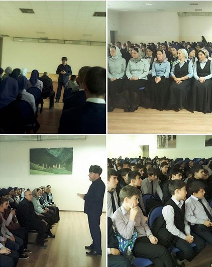 На встрече Магомадов Султан призвал всех учащихся и коллектив школы к чтению салаватов Пророку (с.а.в.) и объявил конкурс на лучшее знание автобиографии Пророка Мухаммада (с.а.в.) .